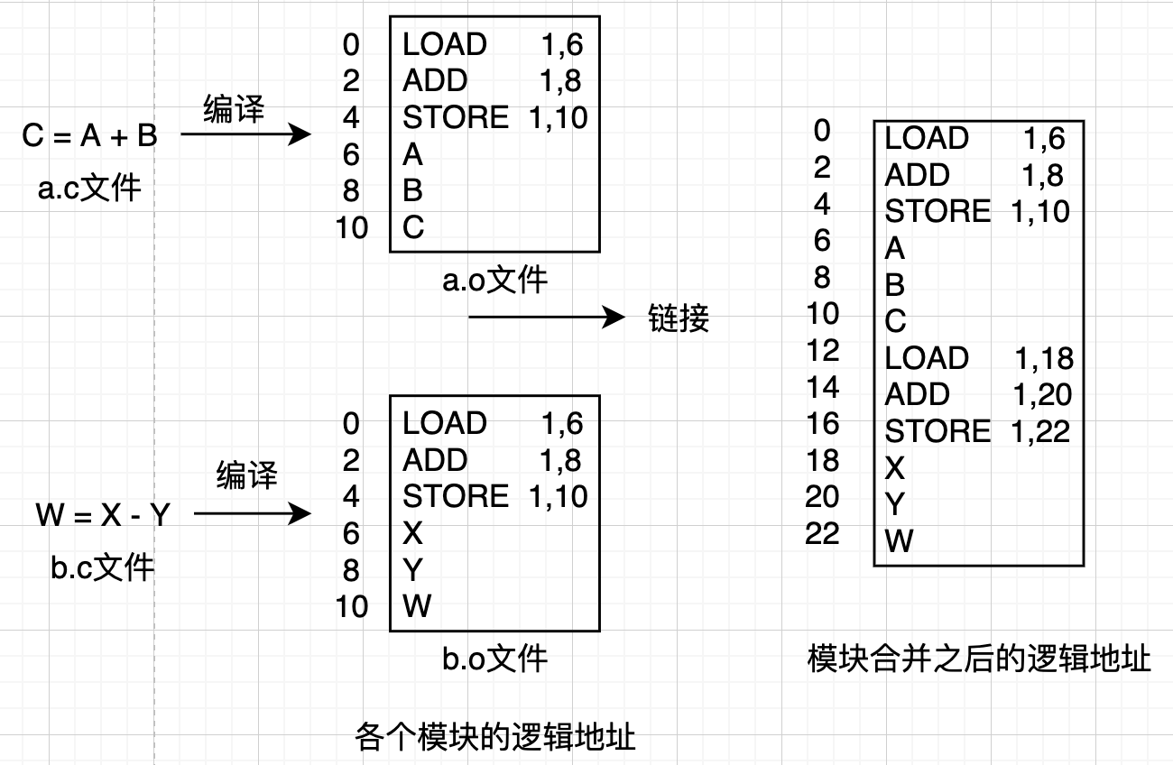 - 各个模块的逻辑地址,逻辑地址也叫做相对地址