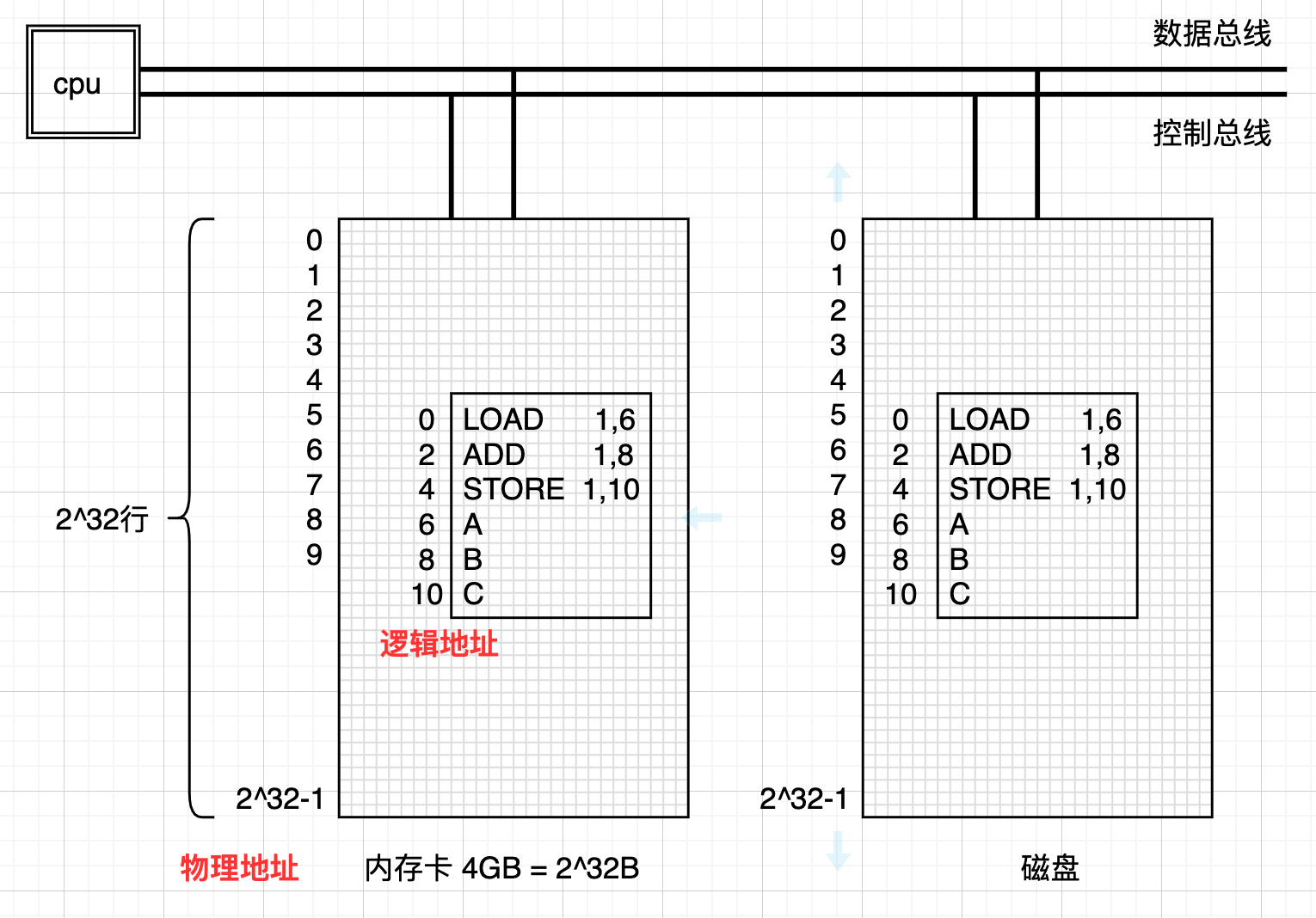 - 逻辑地址 是将程序从磁盘拷贝到内存,可以拷贝最大的行数,这个和操作系统的位数有很大的关系