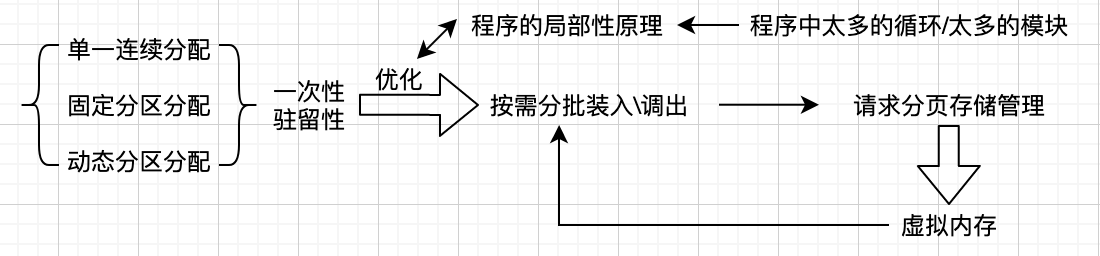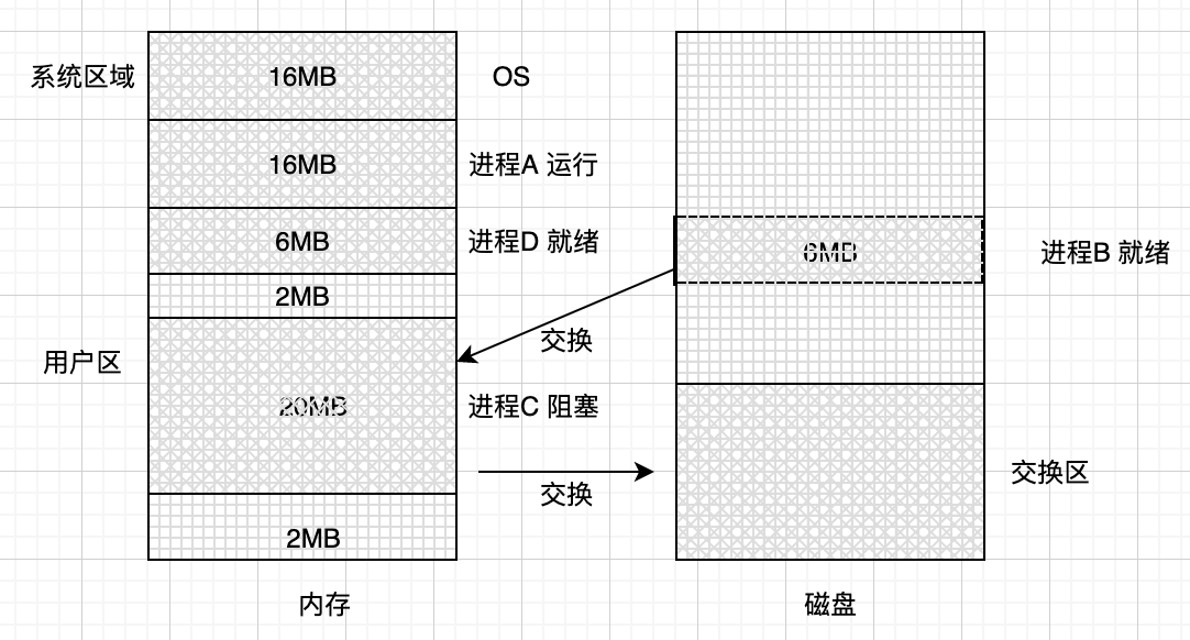 - 磁盘装载大程序的一部分 + 内存装载大程序的一部分,合起来使大程序在小内存内运行,通过对换区,实现数据的交互