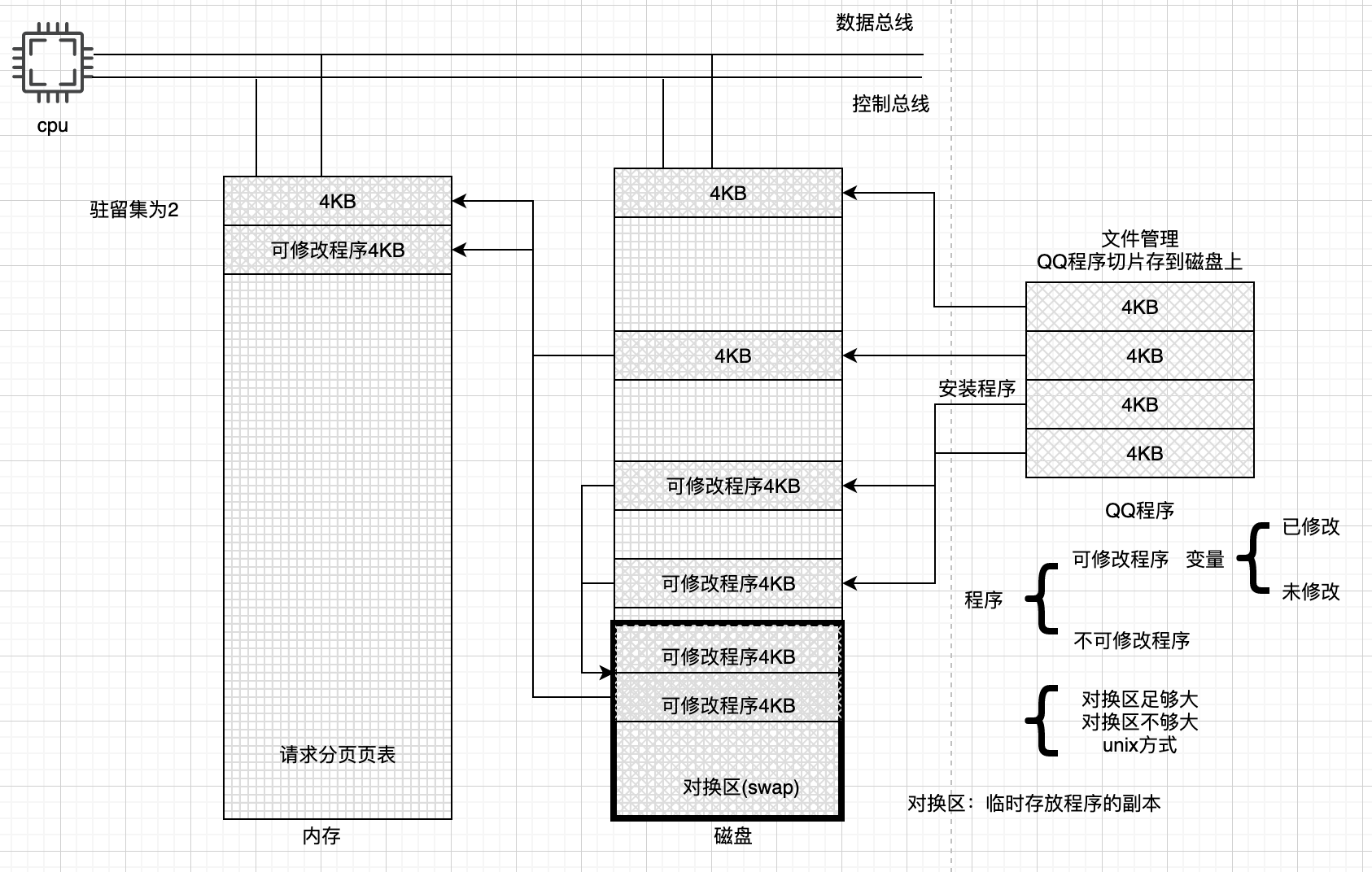 - 2,调出的页面存放在哪里?将修改的内容回写到对换区,不可修改程序不会回写到文件夹