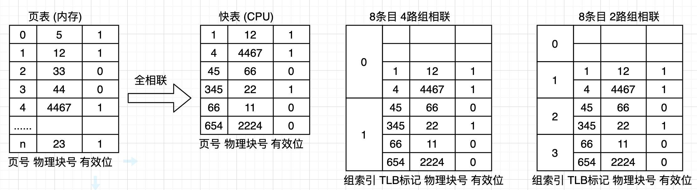 - 全相联映射:快表和页表一样,查询的时候需要从头查到尾
