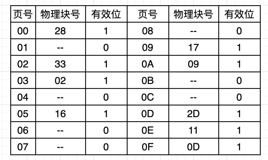 - 页表:记录程序的哪一页被记录到内存中的哪一块