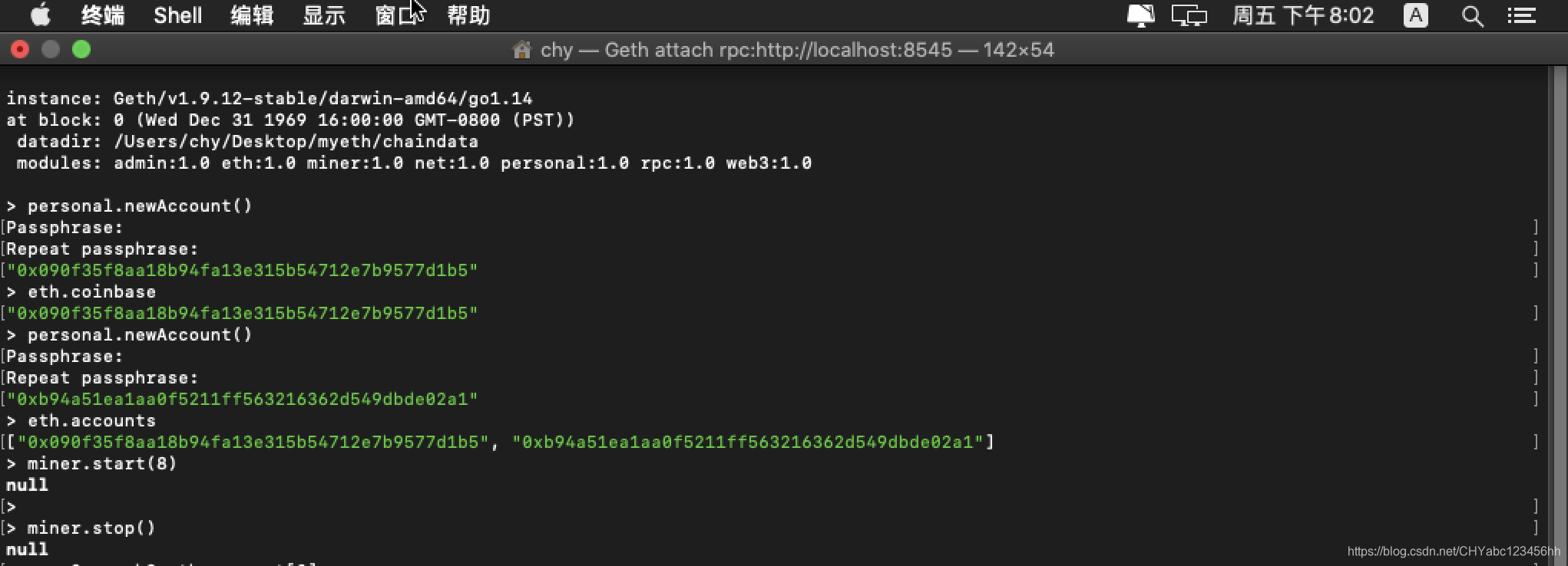 - 注意,这里 . 代表当前的文件夹,也就是上文指定的"/Users/chy/Desktop/myeth/chaindata",否则相关命令无法操作,虽然不报错,但是得不到预期的结果。