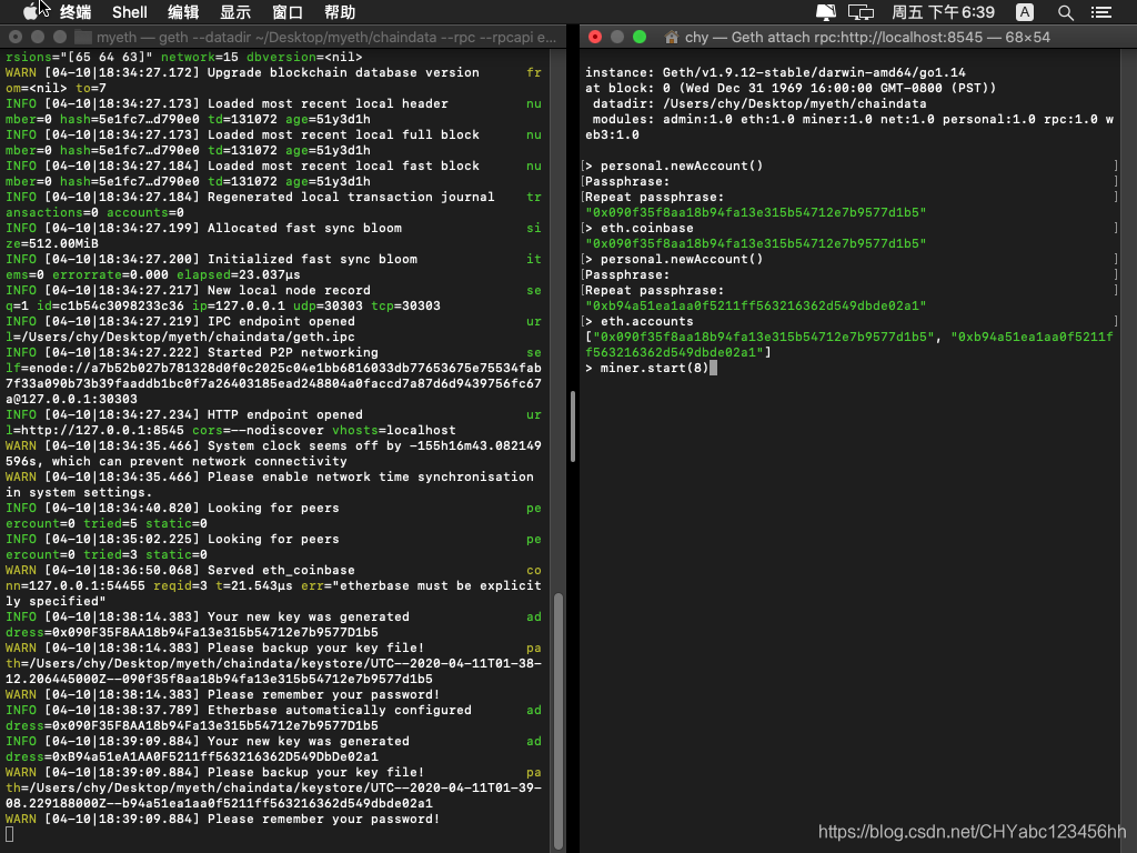 geth --datadir "/Users/chy/Desktop/myeth/chaindata" --rpc --rpcapi "eth,web3,miner,admin,personal,net" --rpccorsdomain "*" --nodiscover --networkid 666999 –allow-insecure-unlock