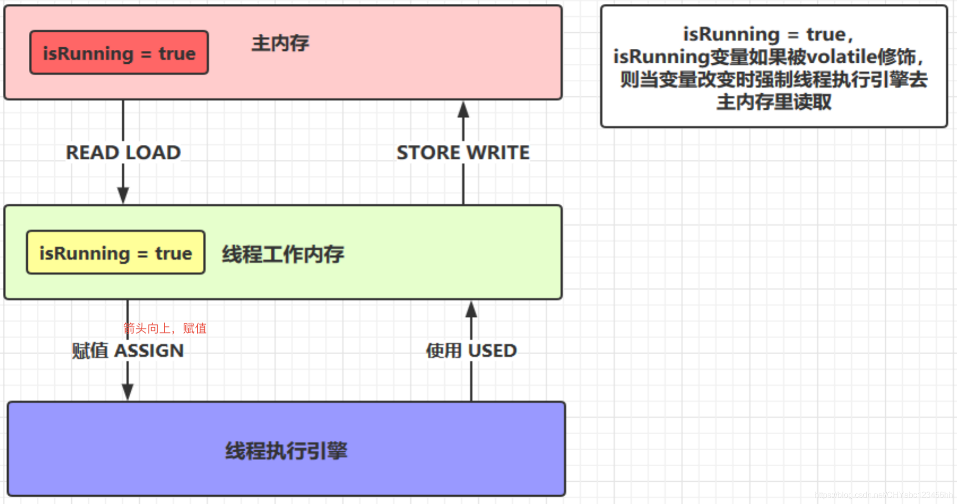 - volatile的作用就是强制线程到主内存(共享内存)里去读取变量,而不去线程工作内存区里去读取,从而实现了多个线程间的变量可见。也就是满足线程安全的可见性