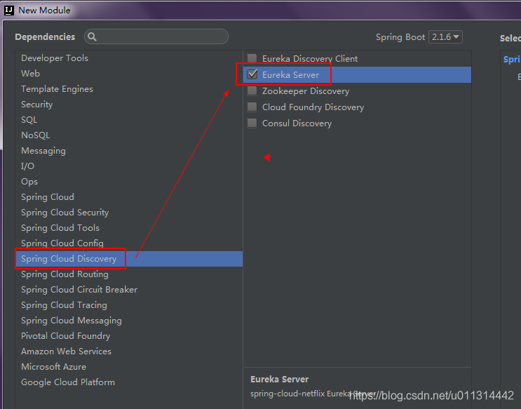 4. spring cloud discovery - 勾选 eureka server ,next。