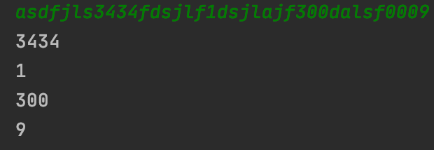 for i in range(n):#如果第i个字符是数字,放进tmp中,如果下一个仍是数字,tmp+=s[i]if '0' <= s[i] <= '9':tmp += s[i]#如果第i个字符不是数字,并且tmp存在,将tmp放进数组aelse:if tmp:a.append(tmp)tmp = ""