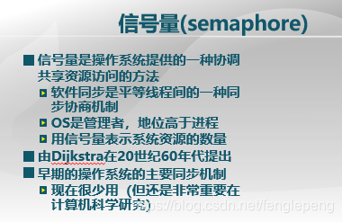 1、信号量(semaphore):是操作系统提供的一种协调共享资源访问的方法