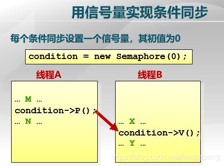 - 条件同步比如线程间的条件等待。互斥访问如下图