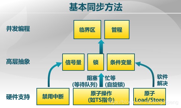 信号量与管程也是进程间通信的方式。信号量是与锁在同一层级实现的,是操作系统提供的一种协调共享资源访问的方法。信号量由操作系统管理,操作系统作为管理者地位是高于进程的。