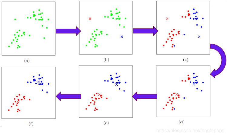 - 没有新点可以更新簇的时候,算法结束。