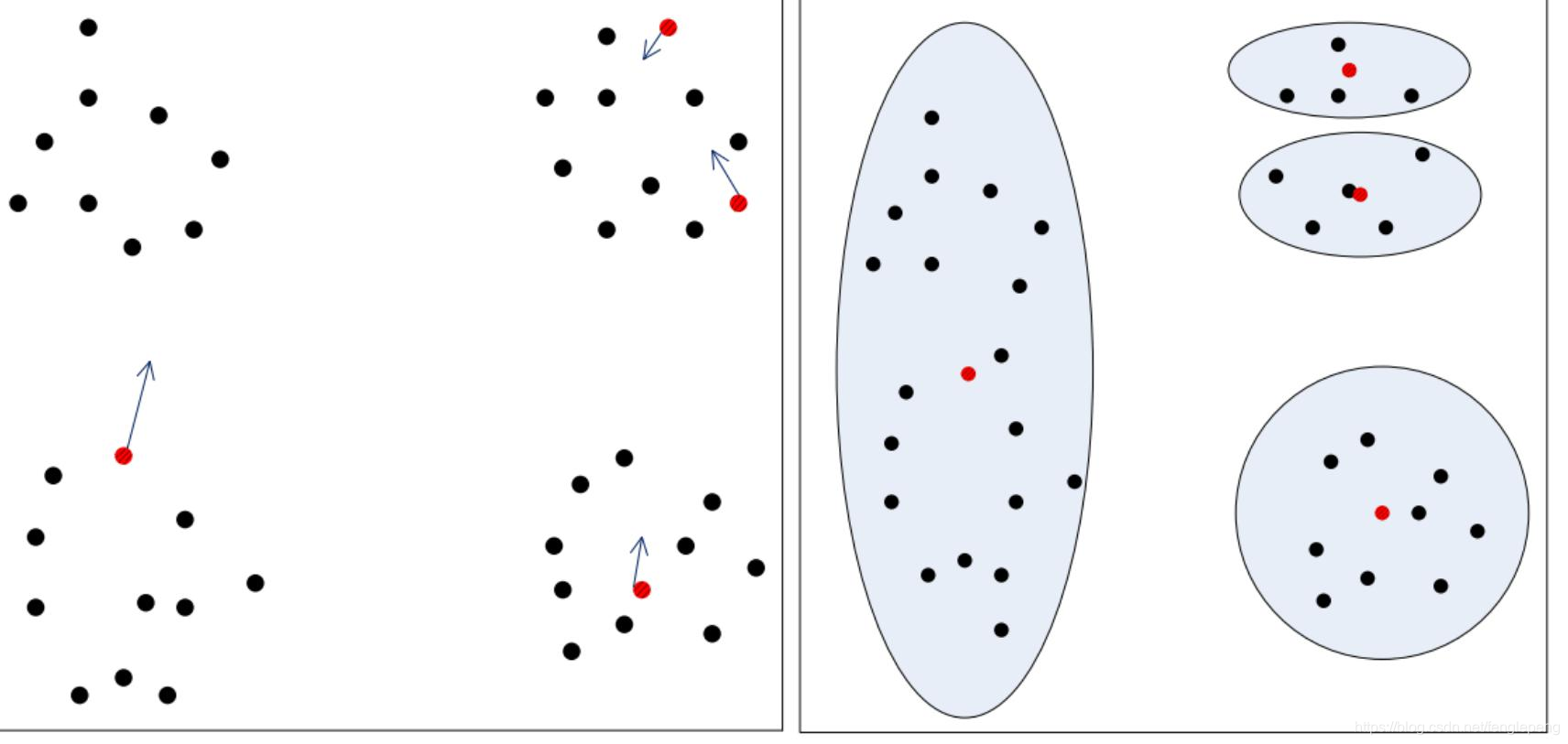 - STEP4:利用这k个初始的聚类中心来运行标准的k-means算法
