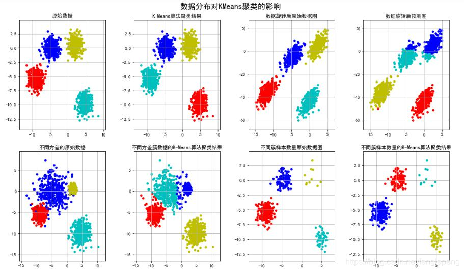 - 只适合分布呈凸形或者球形的数据集、需要给定聚类个数和簇之间的相关参数。
