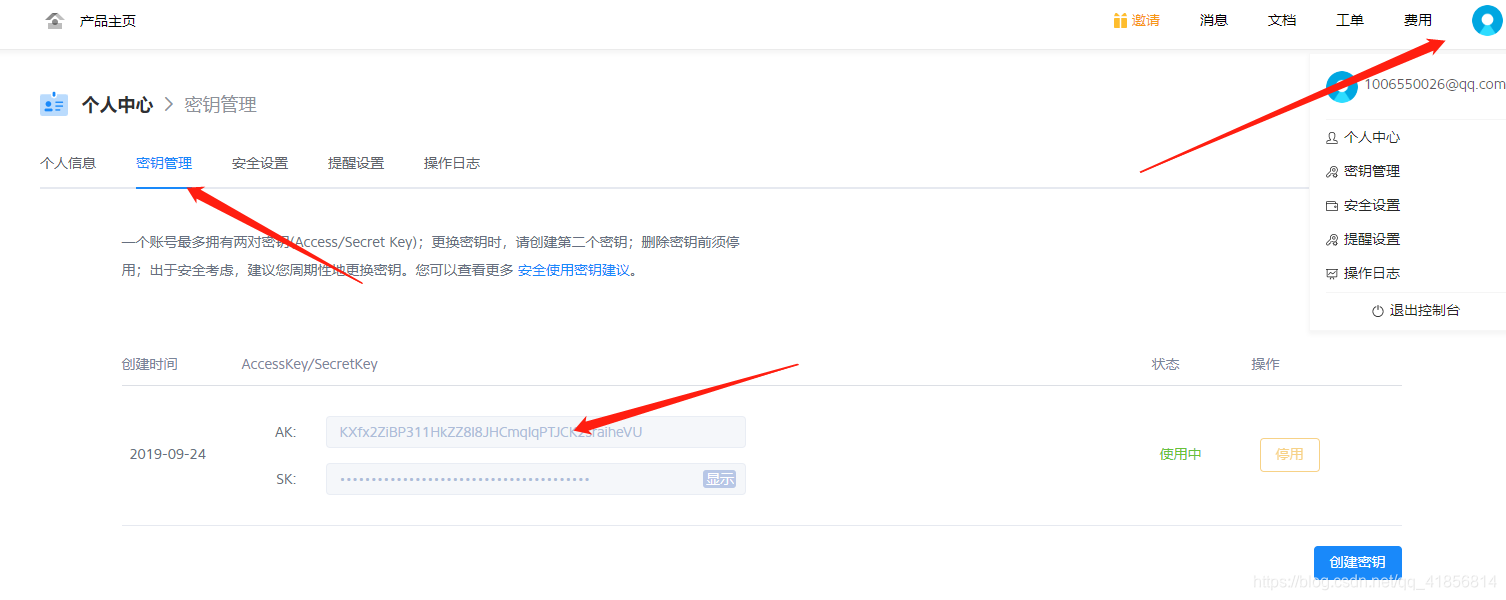 如果已有账号,直接登录七牛开发者后台,点击这里查看 Access Key 和 Secret Key