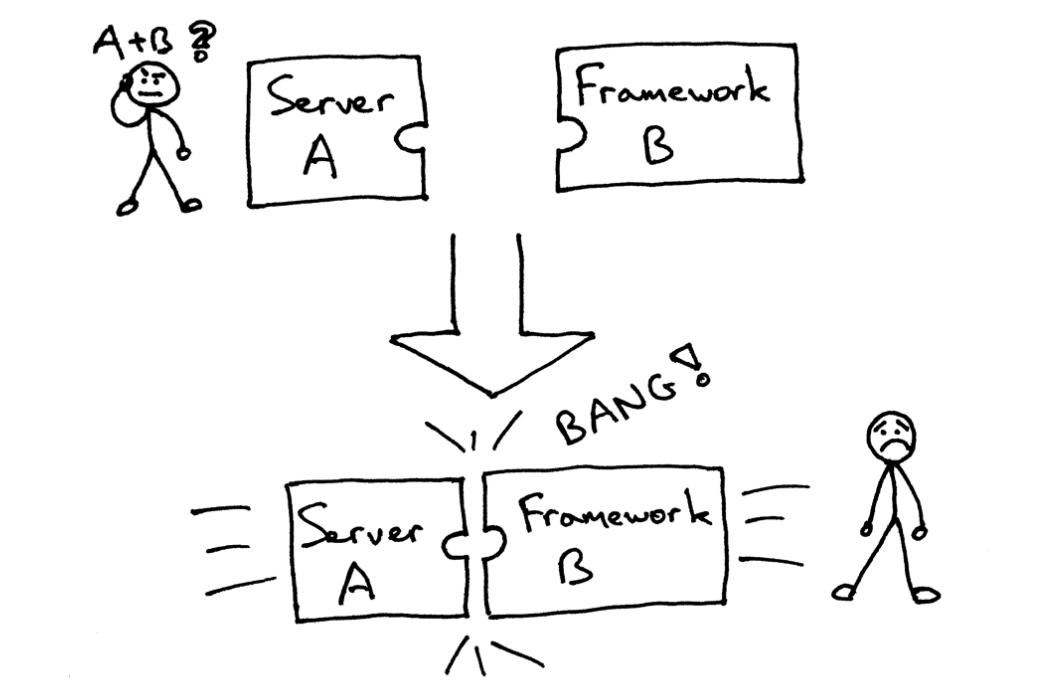 但有可能面对(或者曾有过)下面的问题,当要把一个服务器和一个架构结合起来时,却发现他们不是被设计成协同工作的: