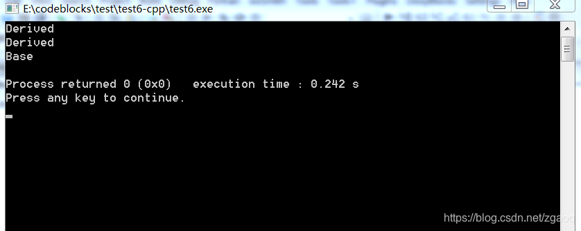 public:virtual void f() { // 最好加上该virtual cout<<"Derived"<<endl;}