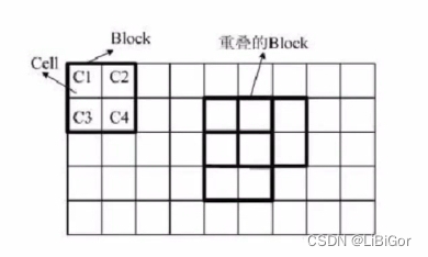 - 重叠直方图归一化:将每几个cell组成一个block(例如3*3个cell/block),一个block内所有cell的特征descriptor串联起来便得到该block的HOG特征描述符。