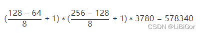 输出结果为:57380,该图的大小为(128*256)(128∗256) ,窗口大小为(64*128)(64∗128) ,block块大小为(16,16),块的移动步长为 (8,8),cell单元大小为(8,8)时,每一个窗口的特征维度为3780,窗口移动步长为(8,8)时,则图像的特征的维度: