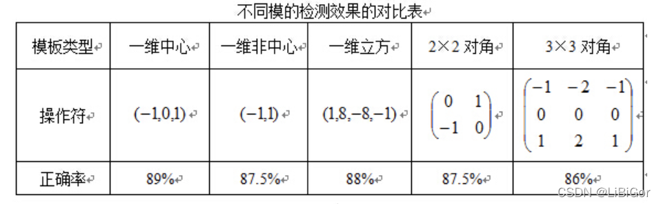 边缘是由图像局部特征包括灰度、颜色和纹理的突变导致的。一幅图像中相邻的像素点之间变化比较少,区域变化比较平坦,则梯度幅值就会比较小,反之,则梯度幅值就会比较大。梯度在图像中对应的就是其一阶导数,所以图像梯度计算利用一阶微分求导处理,不仅能够捕获轮廓、人影以及一些纹理信息,还能进一步弱化光照的影响。Dalal研究了很多算子,如下表所示: