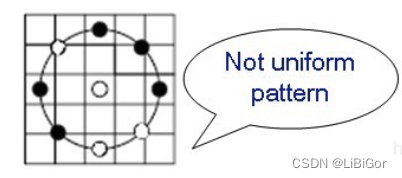 Uniform Pattern LBP特征:当某个LBP所对应的循环二进制数从0到1或从1到0最多有两次跳变时,该LBP所对应的二进制就称为一个等价模式类。。除等价模式类以外的模式都归为另一类,称为混合模式类。