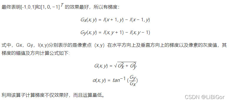 - 梯度计算:计算图像每个像素的梯度(包括大小和方向);主要是为了捕获轮廓信息,同时进一步弱化光照的干扰