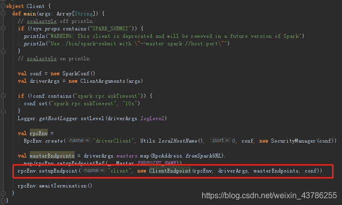 在schedulerBackend的实现类StandaloneSchedulerBackend中的start方法中会创建一个StandaloneAppClient。