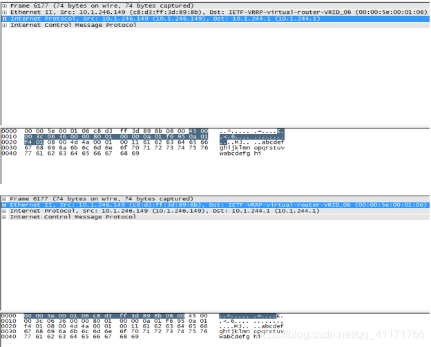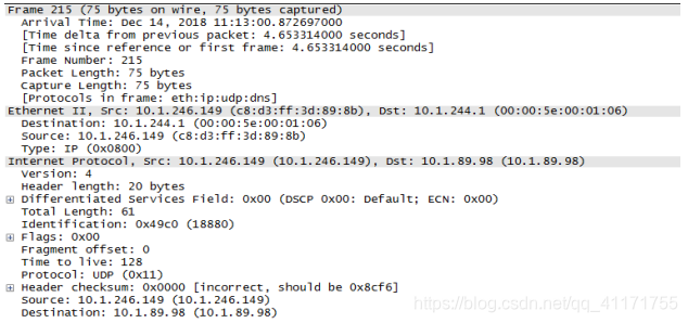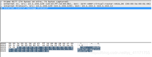 这里主要找了一个数据帧进行分析:帧以太网协议、链路层协议、IP协议