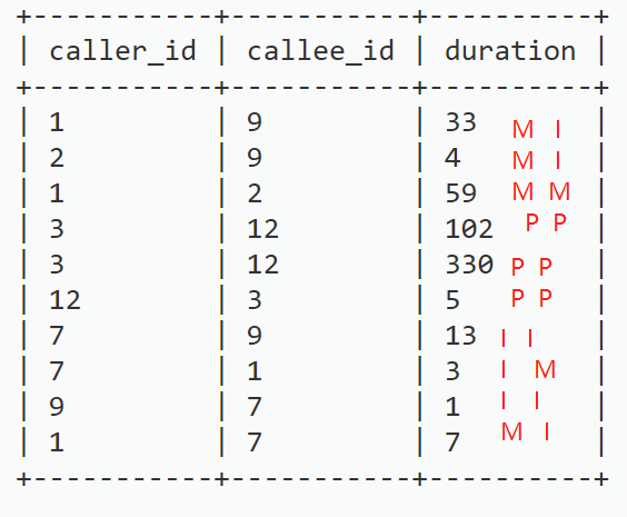 (select country, sum(num) totalnum, sum(calltime) totaltime, sum(calltime)/sum(num) avgtimefrom(select country, count(*) num, sum(duration) calltimefrom Calls c1 left join people_countryon c1.caller_id = people_country.idgroup by countryunion allselect country, count(*) num, sum(duration) calltimefrom Calls c2 left join people_countryon c2.callee_id = people_country.idgroup by country) tgroup by country
