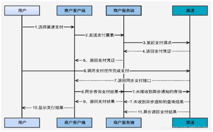 第七步:一般渠道是采用异步通知方法来通知商户,但是有些企业是在第六步支付完成之后,在C端会同步通知支付成功。如果以此结果来判断支付是否成功,其实是不严谨会出问题的,应当调用渠道的支付接口来进行核查,然后以渠道返回的结果为准。