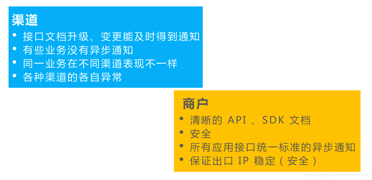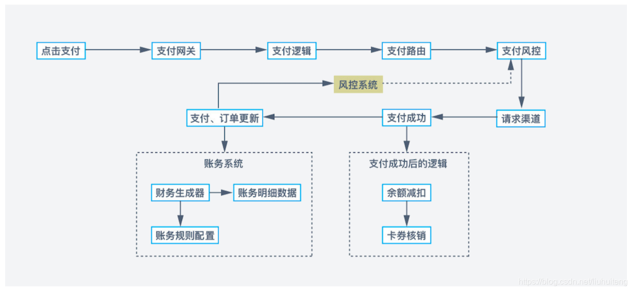 这里讲一下,支付成功之后,我们会把订单信息同步到财务系统,在账务系统里我们设计了诸如转账、汇款等功能,在前期设计时会设计好账务的生成规则,例如;一笔支付的请求会生成多笔账务,对其字段进行区分,这样方便管理和维护。