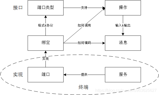 抽象地描述了支持的操作和消息并与具体的网络协议和消息格式相关联