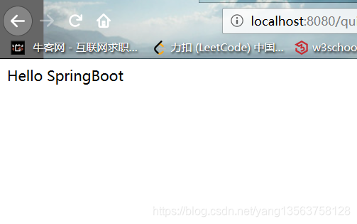 public class QuickController {@RequestMapping("/quick")@ResponseBodypublic String quick(){return "Hello SpringBoot";}