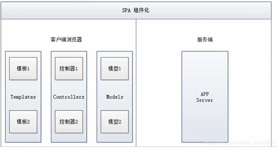 为了降低前端开发复杂度,涌现了大量的前端框架,比如angular js,react,vue js,ember js等,这些框架总的原则是先按模型分层,比如templates,controllers,model,然后再在层内做切分如下图: