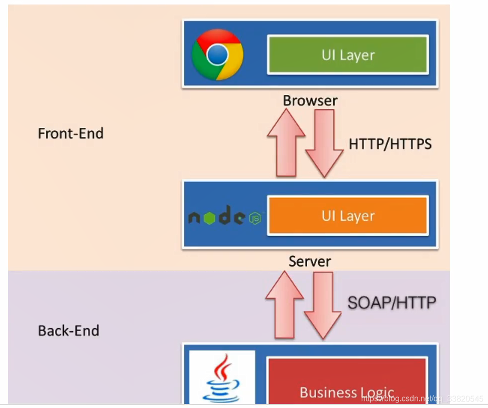 在这种研发模式下,前后端的职责很清晰。对前端来说,两个UI层各司其职: