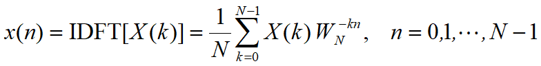 设a为实数序列频谱,b为实数序列,利用构造好的频谱序列a通过IDFT(逆离散傅里叶变换)得到实数序列。