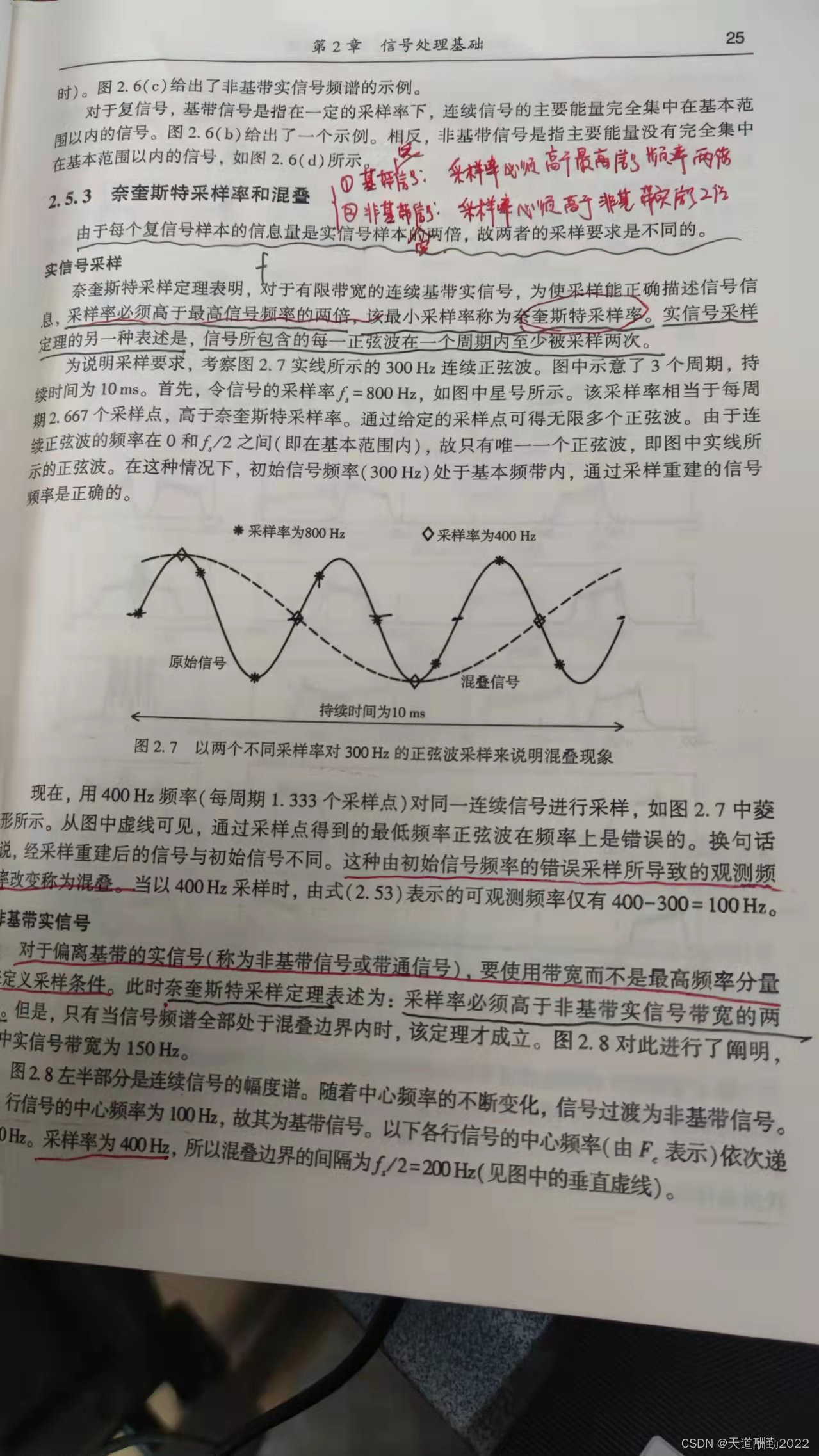 实信号采样定理:信号所包含的每一正弦波在一个周期内至少被采样两次。