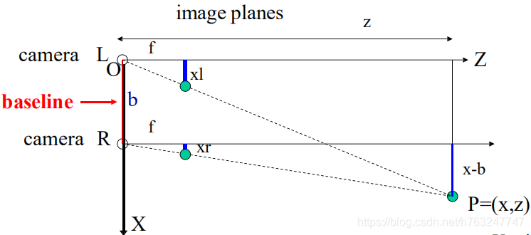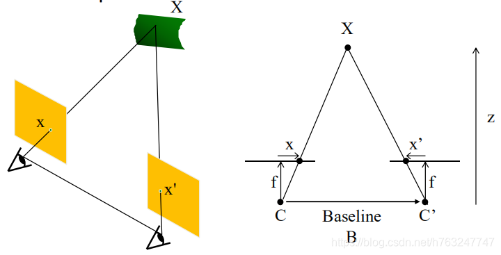 - 基线(baseline): 连接两个照相机中心点的线段,如图中的OO'。