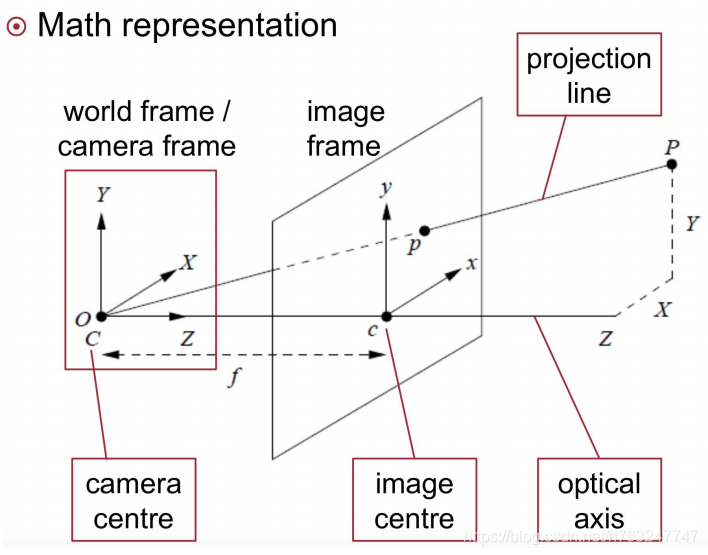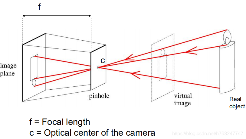 此变换通过小孔成像实现,其原理如下图所示: