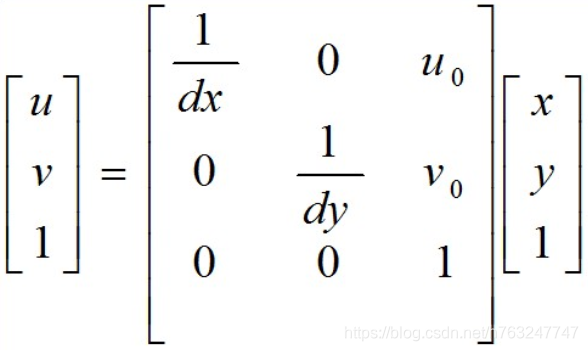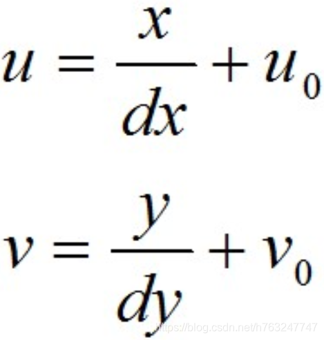 从图像坐标系到像素坐标系的变换公式为: