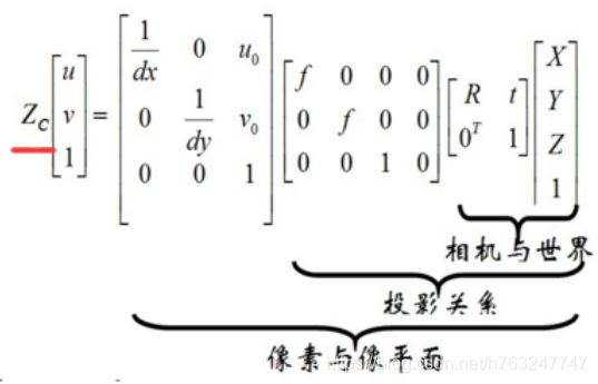 综合3和4两部分,隐去图像坐标系,直接求取从相机坐标系到像素坐标系的变换矩阵