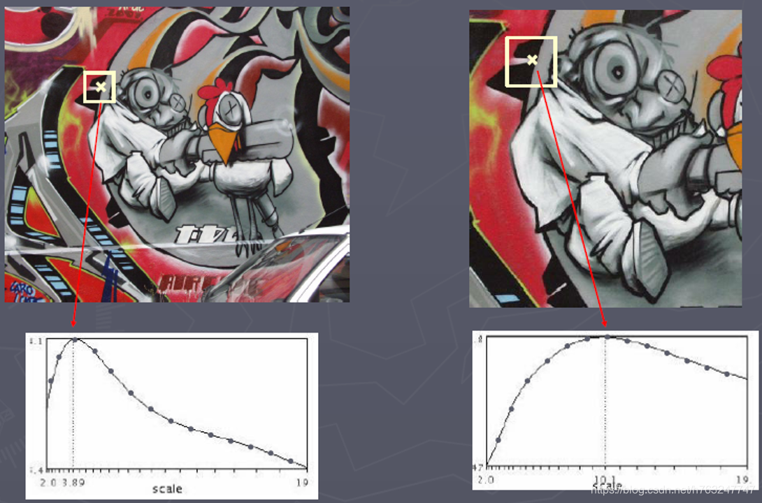 所以在尺度, 高斯拉普拉斯响应值达到最大。