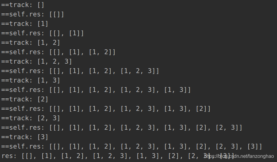 class Solution:def backtrace(self, digits, track):if len(digits) == 0:#满足终止条件self.res.append(track)returnfor letter in self.phone[digits[0]]:# for循环去遍历选择条件store = track#保存中间结果用于回溯track += letterself.backtrace(digits[1:], track)track = store#恢复中间结果回溯def letterCombinations(self, digits):self.res = []if len(digits) == 0:return self.resself.phone = {'2': ['a', 'b', 'c'],'3': ['d', 'e', 'f'],'4': ['g', 'h', 'i'],'5': ['j', 'k', 'l'],'6': ['m', 'n', 'o'],'7': ['p', 'q', 'r', 's'],'8': ['t', 'u', 'v'],'9': ['w', 'x', 'y', 'z']}self.backtrace(digits, track='')print('==self.res:', self.res)return self.resdigits = "23"