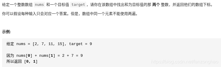 class Solution:def twoSum(self, nums, target):res = []for i in range(len(nums)):for j in range(i+1, len(nums)):if nums[i]+nums[j]==target:res.extend([i, j])breakprint('==res:', res)return res