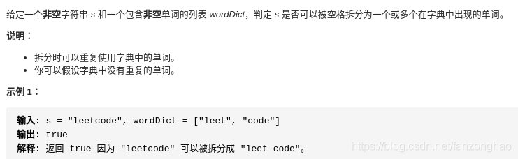 class Solution:@functools.lru_cache()def helper(self, s):if len(s) == 0:return Trueres = Falsefor i in range(1, len(s)+1):if s[:i] in self.wordDict:res = self.helper(s[i:]) or resreturn resdef wordBreak(self, s, wordDict):self.wordDict = wordDictreturn self.helper(s)