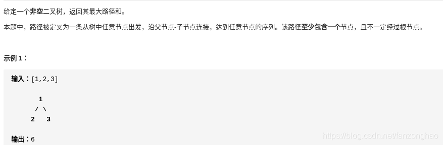 public:int max_value=INT_MIN;int helper(TreeNode *node){if(!node){return 0;}int left_gain = helper(node->left);int right_gain = helper(node->right);max_value = max(max_value, node->val+left_gain+right_gain);return max(max(node->val+left_gain,0),node->val+right_gain);}int maxPathSum(TreeNode* root) {helper(root);return max_value;}