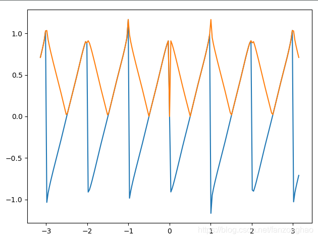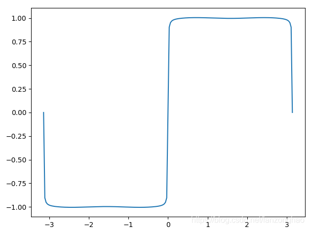 for i in range(len(x)):y[i] = -(2 / np.pi) * np.sum(np.sin(2*np.pi * x[i]*k) / k)