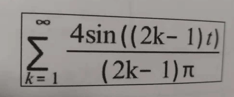 for i in range(len(x)):y[i]=(4/np.pi)*np.sum(np.sin(k*x[i])/k)