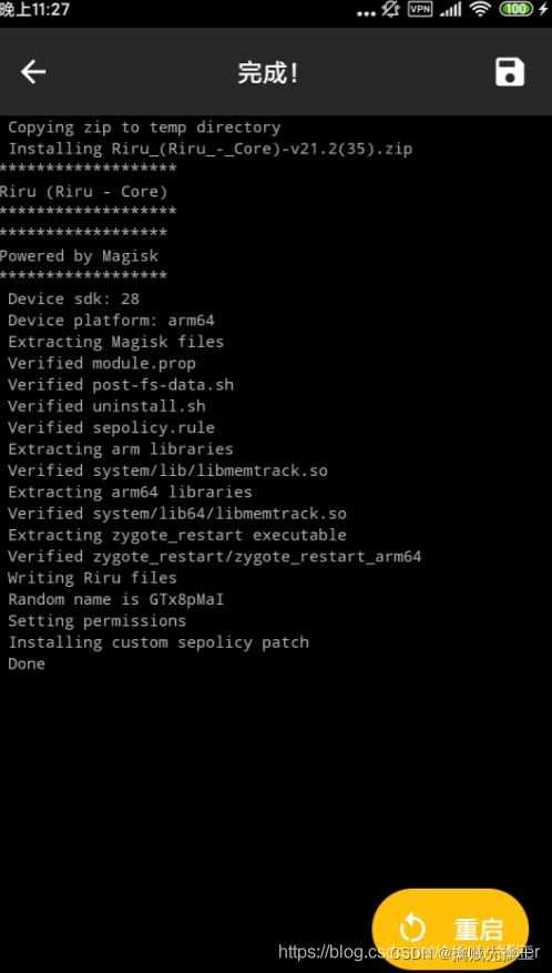 安装过程中如果遇到“cp: can't create '/system/xposed.prod':Read-only file system Error 1 occurred”问题,需要再次操作一遍四、刷入Magisk ,操作完成后,在次安装就能解决问题