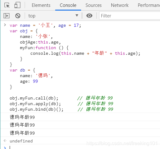 }obj.myFun.call(db); // 德玛年龄 99