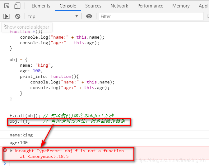 比较一下这两者 this 的差别,第一个打印里面的 this 指向 obj,第二个全局声明的 shows() 函数 this 是 window ;